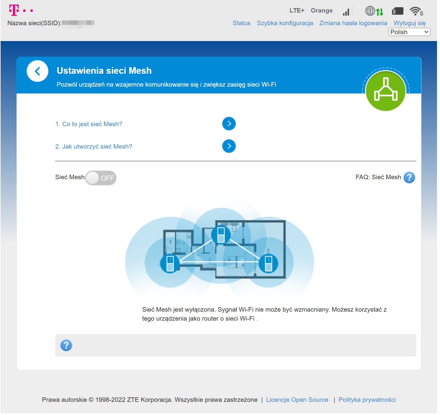 - obsługa systemu ZTE MESH