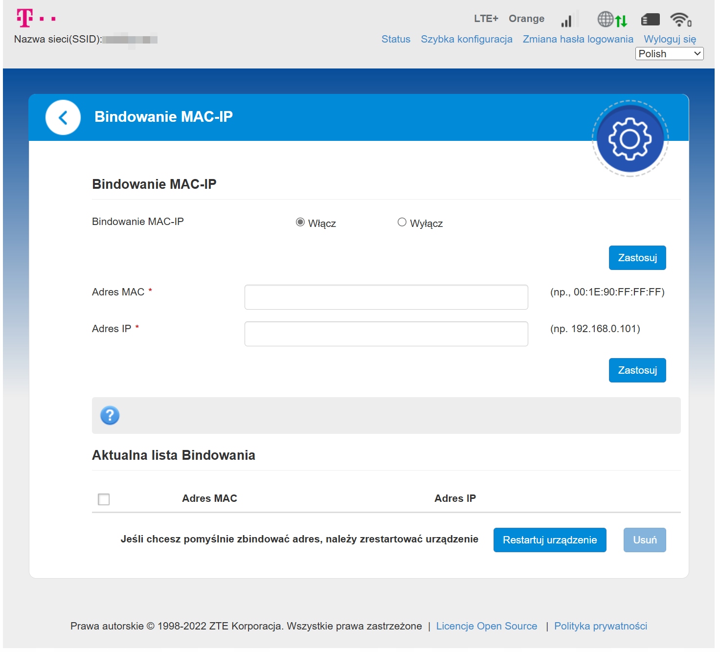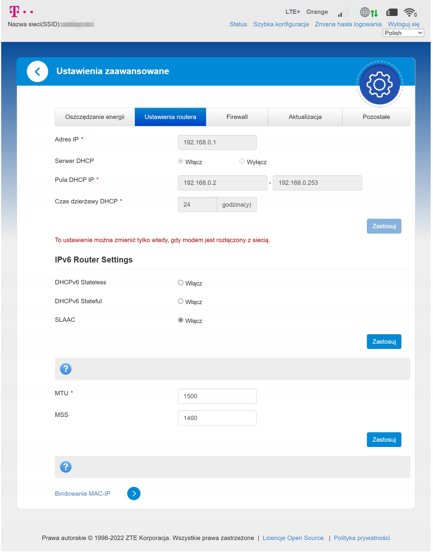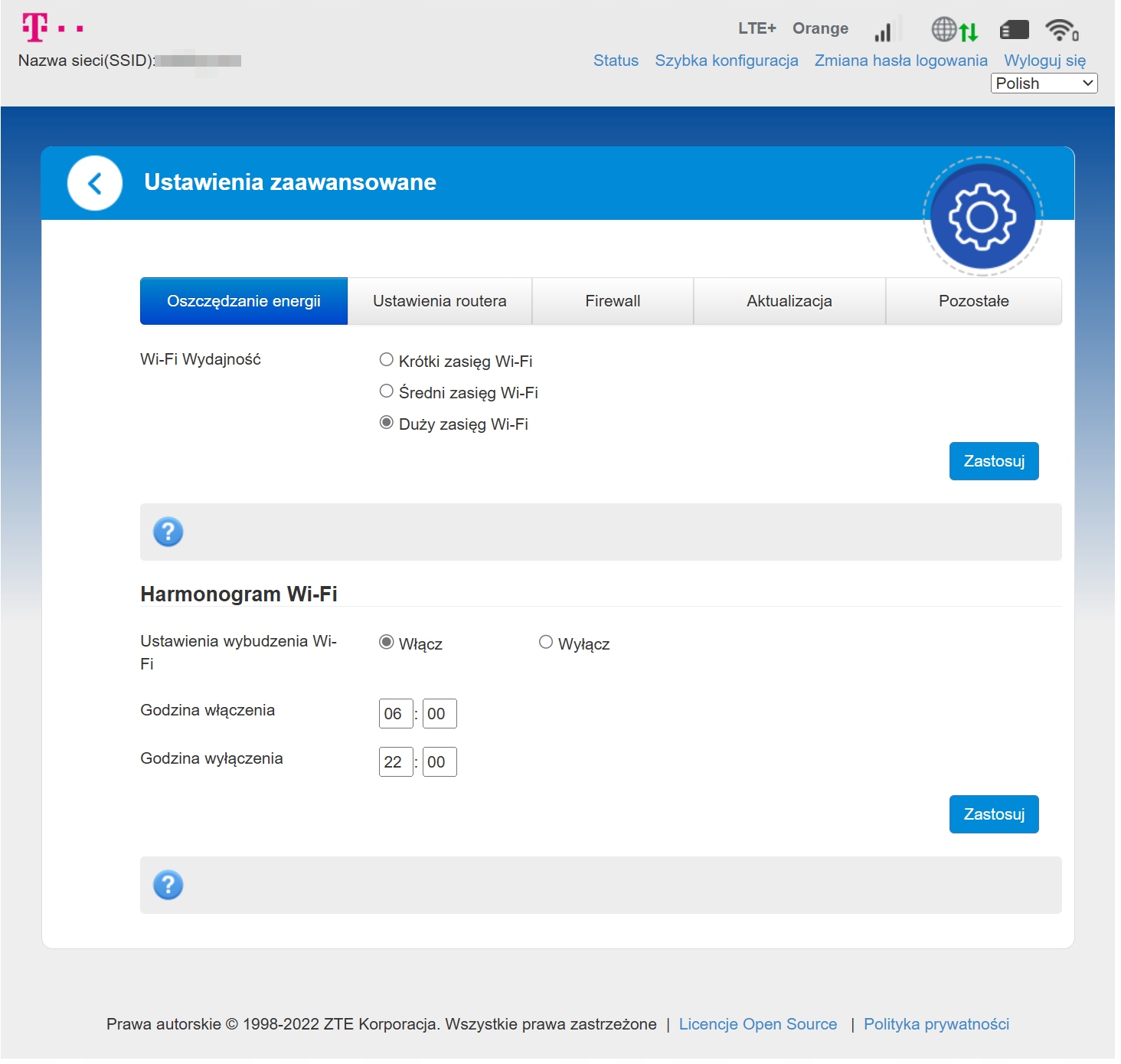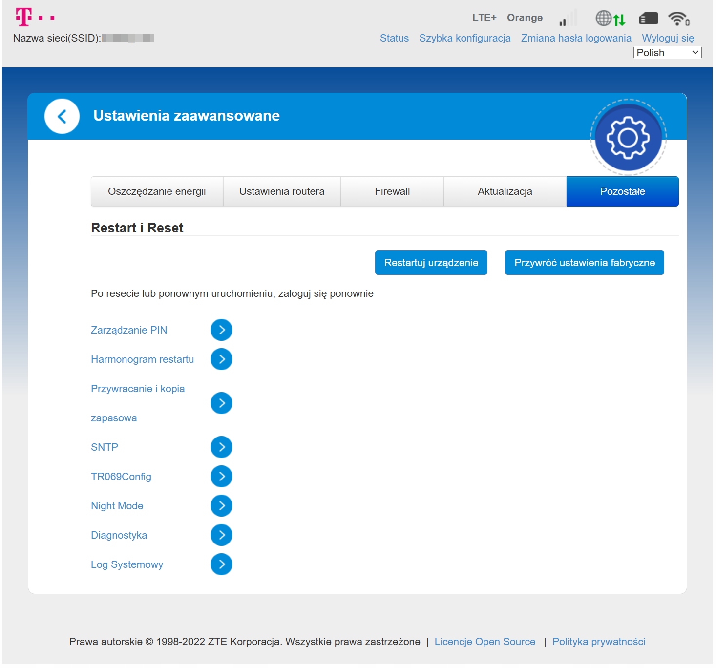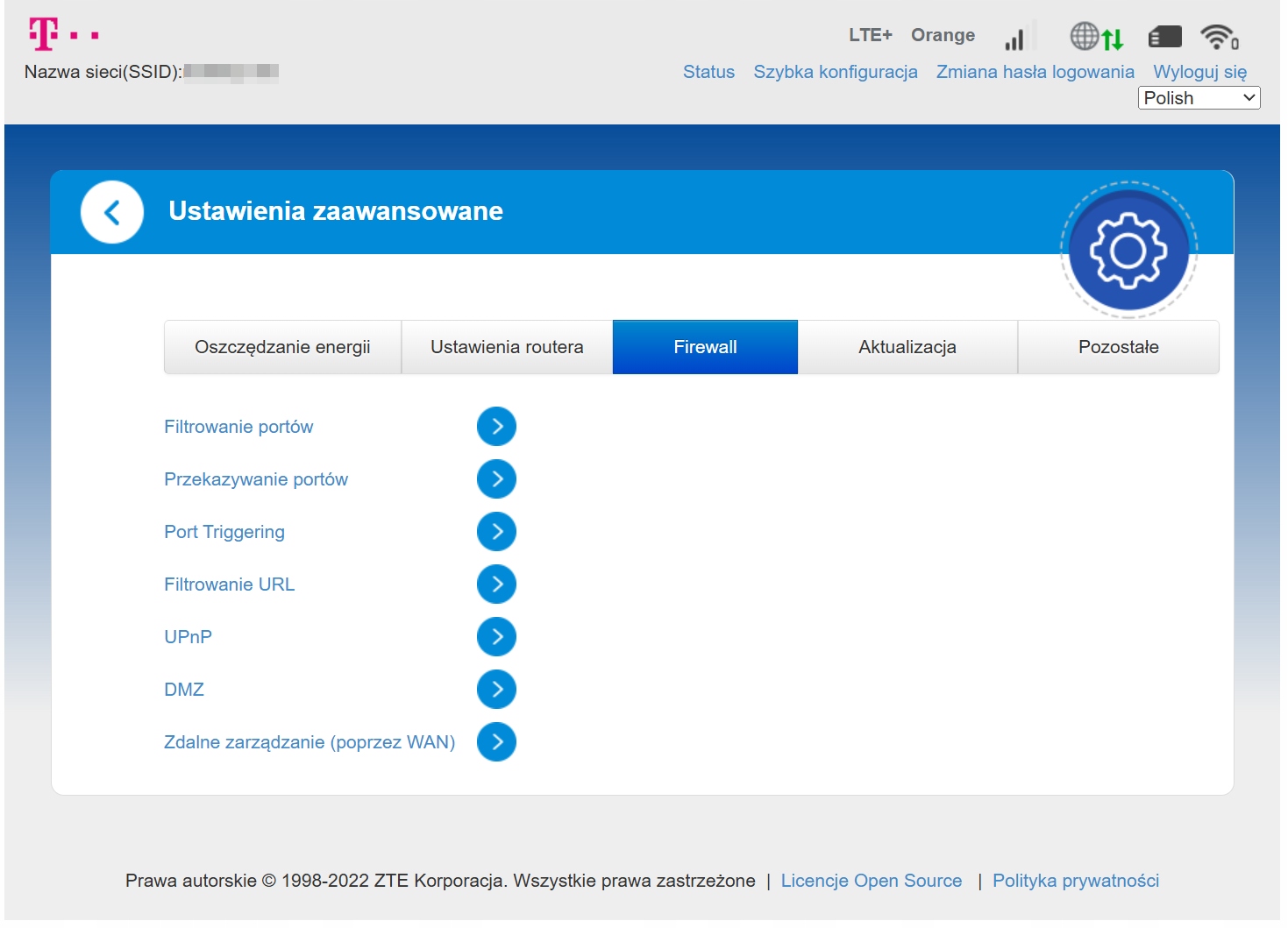 Router ma menu w języku polskim.