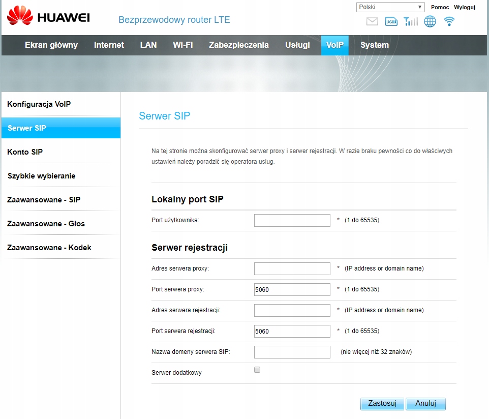 Router ma menu w języku angielskim. Do większości operatorów nie jest wymagana dodatkowa konfiguracja.