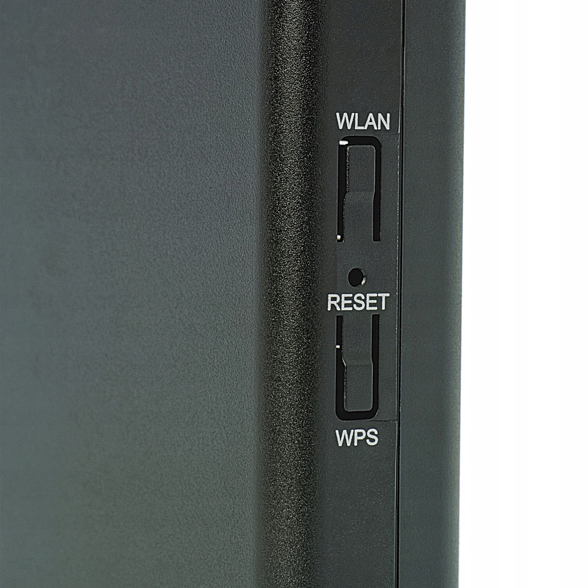 Na bocznej części zostały umieszczone przyciski WPS, RESET oraz WiFi – w routerze możesz wyłączyć sieć bezprzewodową, gdy z niej nie korzystasz.