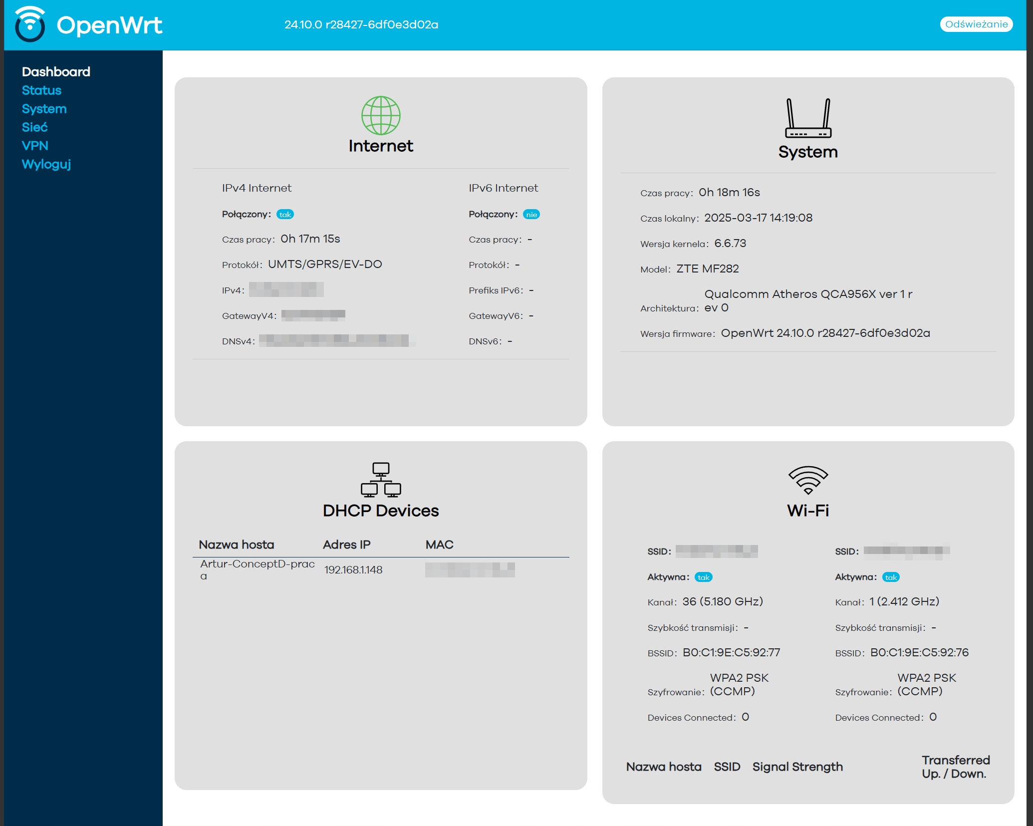- wgrane oprogramowanie OpenWRT