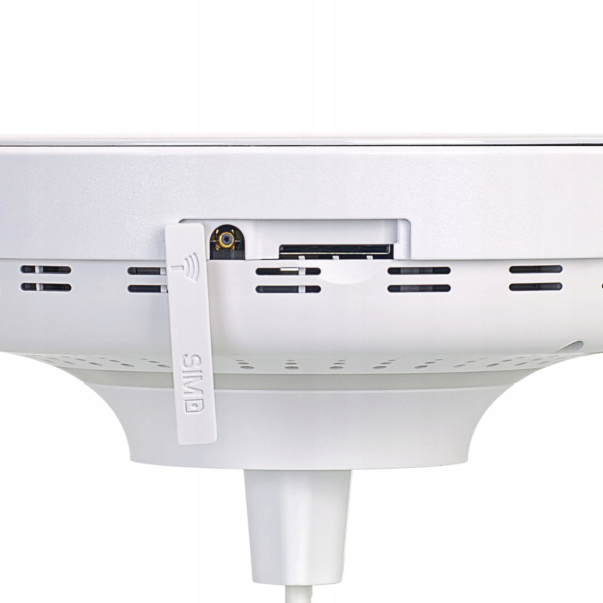 Na górnej części został umieszczony włącznik, ale nie musisz go naciskać, ponieważ urządzenie startuje automatycznie po podłączeniu do gniazdka. Czyli po zaniku napięcia również włączy się i połączy automatycznie (jeżeli karta nie ma kodu PIN).