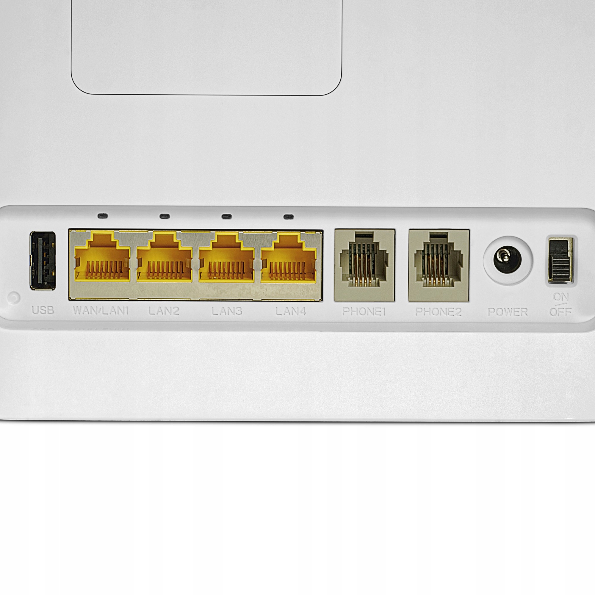 Ponadto – na tylnej części routera jest złącze telefoniczne. Możesz tam podłączyć telefon stacjonarny i rozmawiać poprzez włożoną do niego kartę SIM.