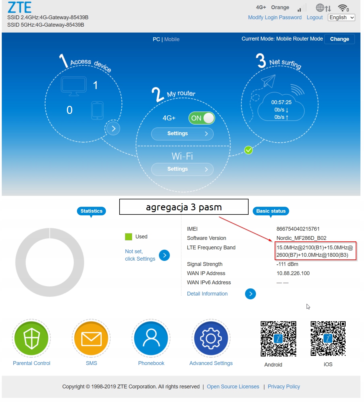 Urządzenie: ZTE MF286D + 2x antena SMA