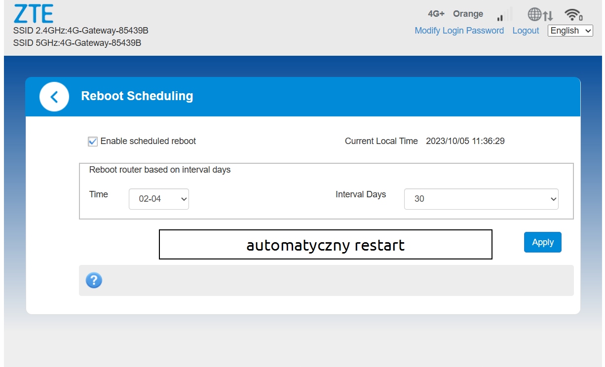 Router ma menu w języku angielskim.